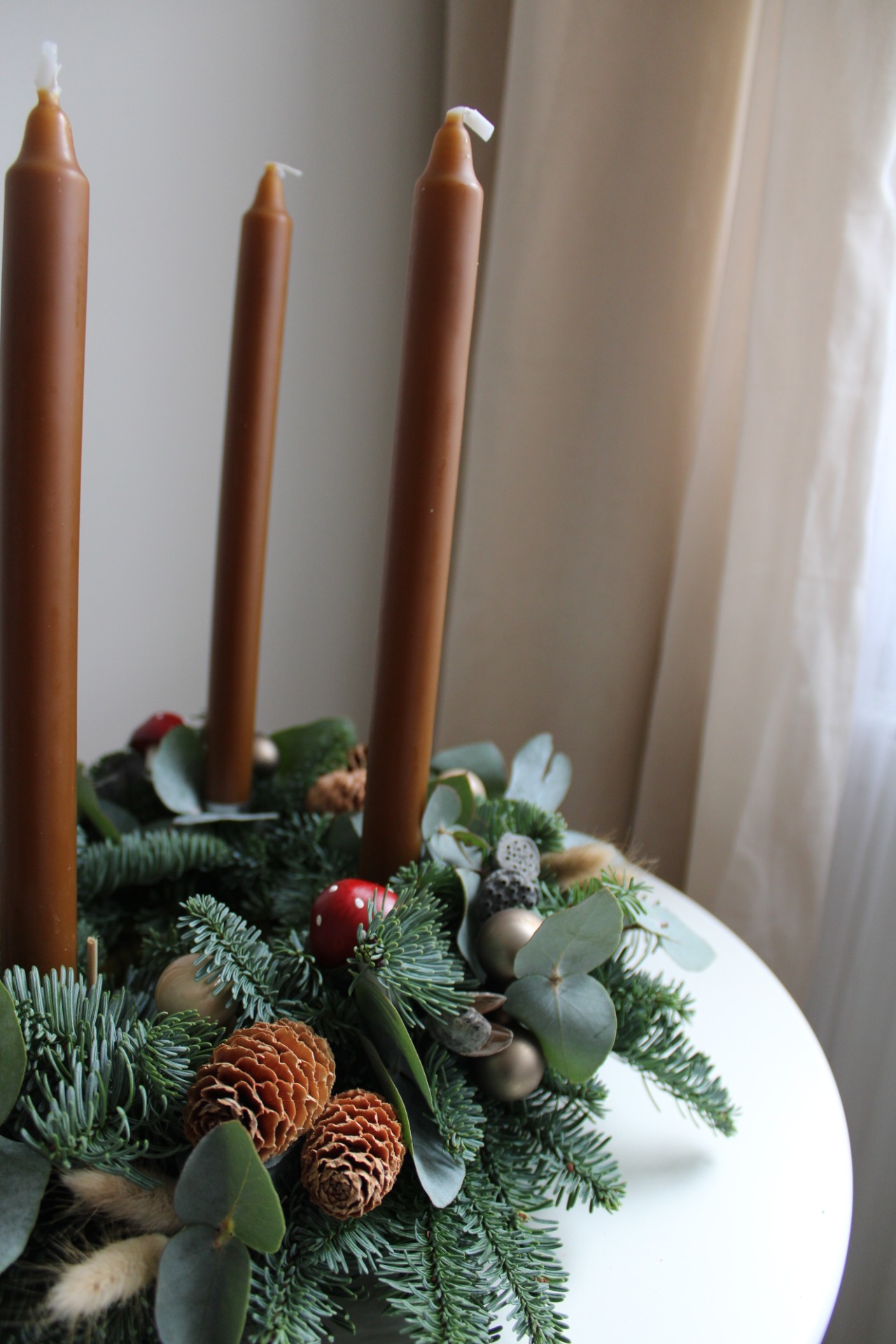 Vneste do svého domova klidnou atmosféru přírody s naším Přírodním adventním věncem. Věnec je ručně vázán z neopadavé jedle Nobilis a voňavého eukalyptu, což zajišťuje dlouhou trvanlivost a autentickou lesní vůni.