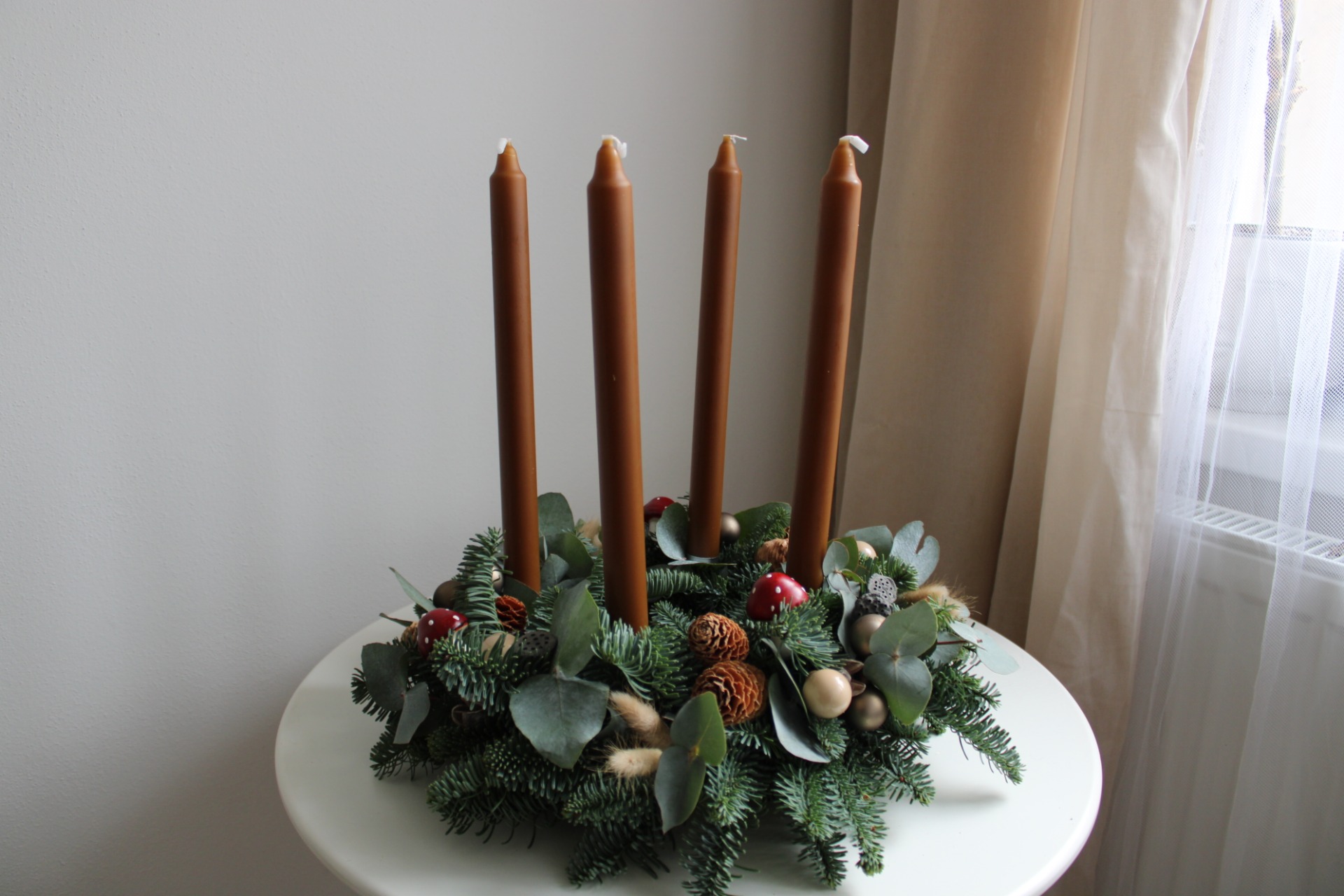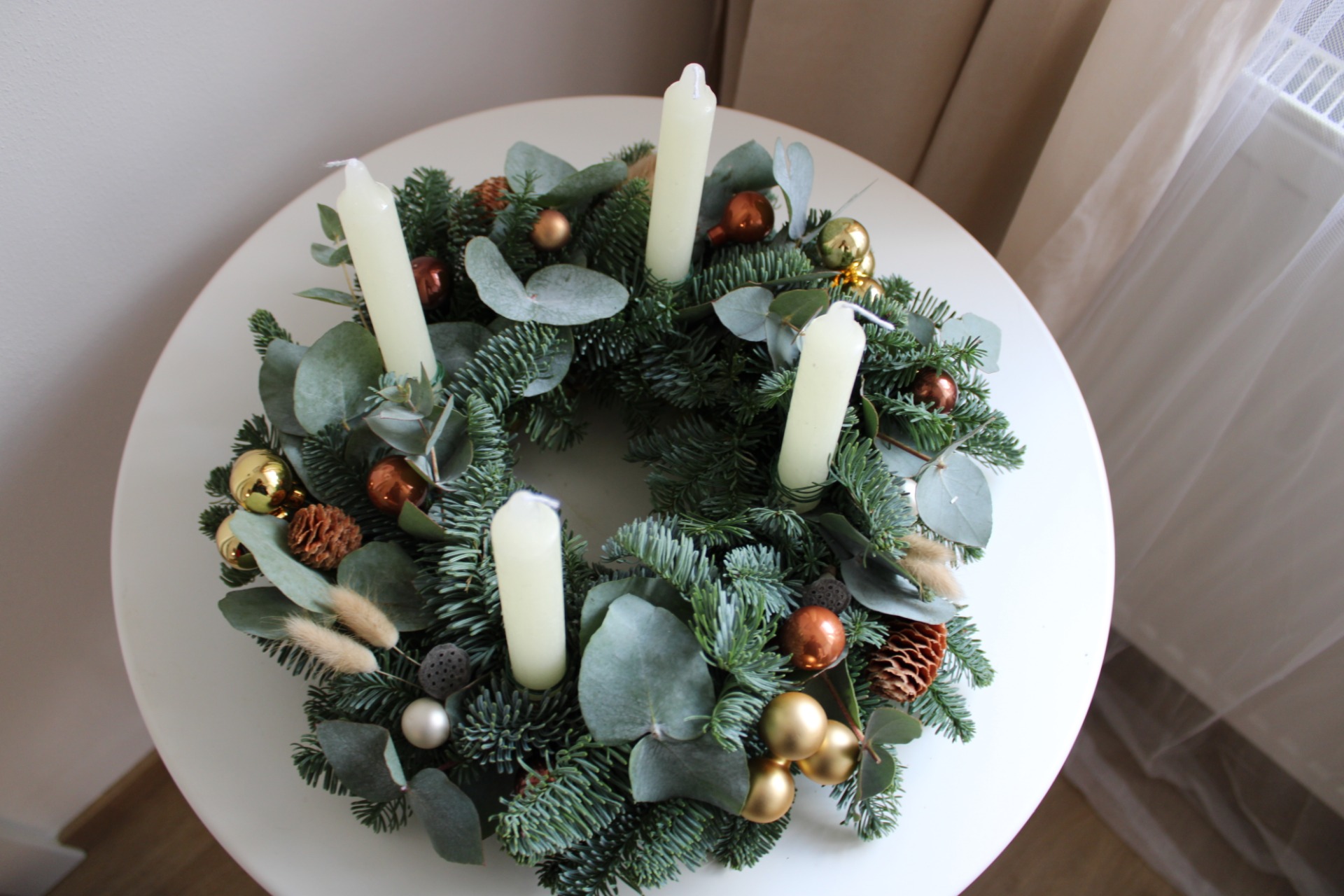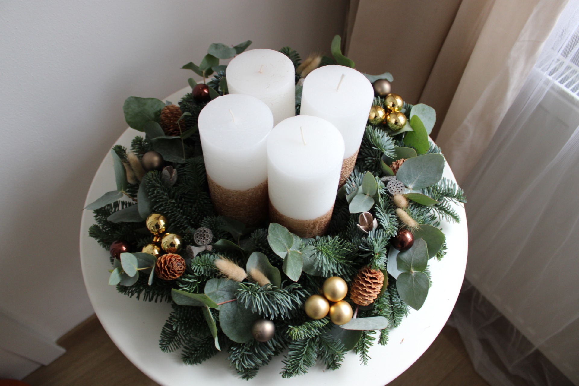 Vneste do svého domova čistou eleganci a jemný luxus s tímto Krémovým adventním věncem . Je ručně vázaný z neopadavé jedle Nobilis a voňavého eukalyptu, což zaručuje svěžest a dlouhou trvanlivost po celé svátky. Tento věnec je kompletní adventní dekorace v moderním, nadčasovém stylu. Součástí balení jsou čtyři vysoké kónické svíčky v elegantní krémové až perleťové barvě, které jsou pro maximální stabilitu bezpečně usazeny v kovových držácích (zápichách) přímo na korpusu. Věnec má velkorysý průměr cca 40 cm (korpus 25 cm). Zdobení je laděno do sofistikovaných krémových a perleťových tónů , doplněných decentními stříbrnými či zlatými akcenty. TIP: Jedná se o luxusní variantu s kónickými svíčkami v držácích, připravenou k okamžitému zapálení. Materiál: Čerstvá jedle Nobilis (neopadavá), eukalyptus, ozdoby v krémové a perleťové. Součástí jsou 4 kónické svíčky a držáky (zápichy). Velikost: Průměr cca 40 cm (korpus 25 cm). Doprava: Odesíláme čerstvé v týdnu před první adventní nedělí (od 24. 11.). Pokud si přejete doručení dříve, uveďte tento požadavek prosím do poznámky k objednávce.