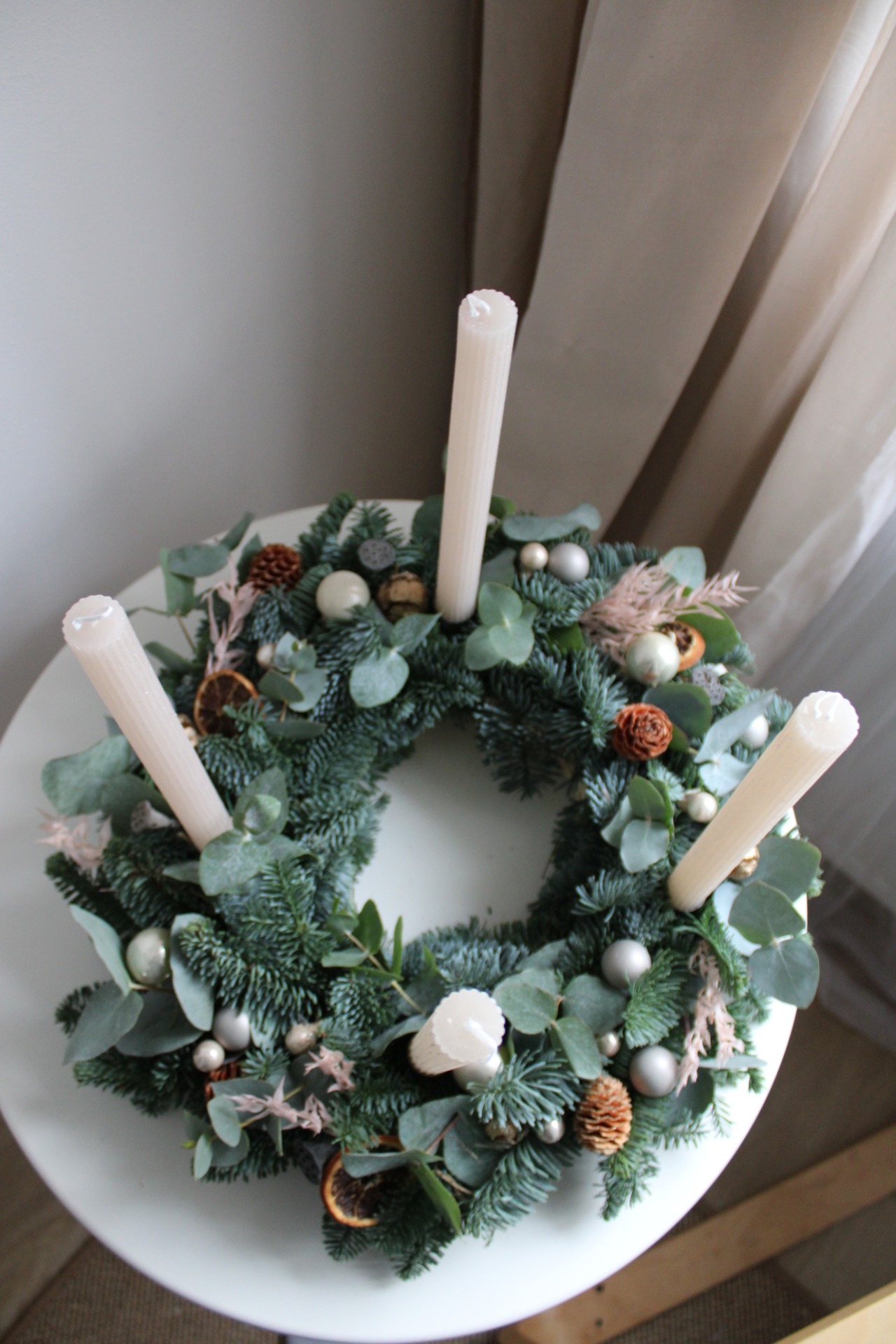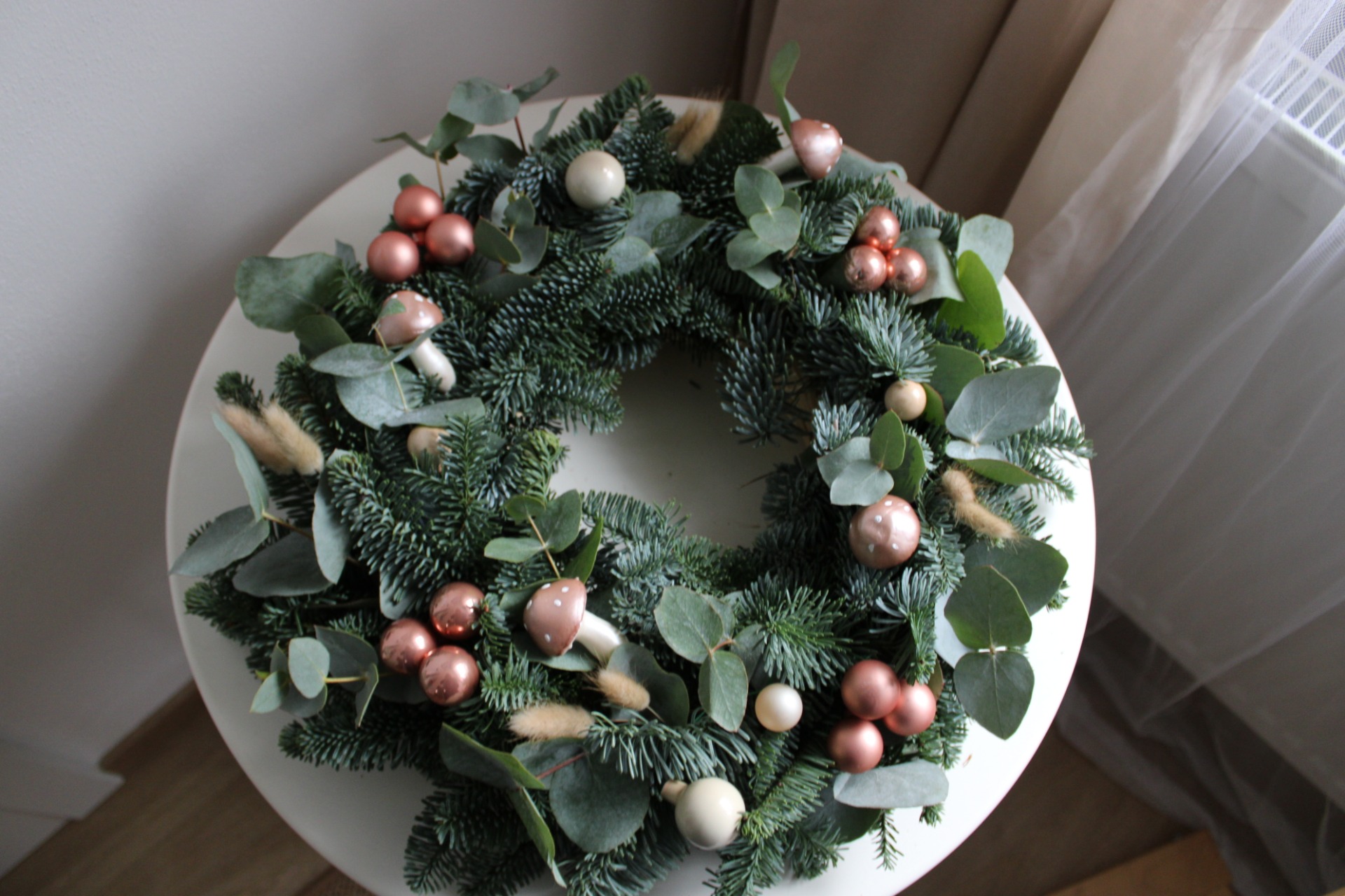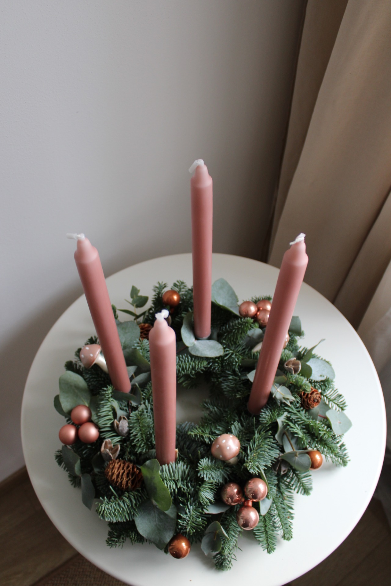 Vneste do svého domova čistou eleganci a jemný luxus s tímto Krémovým adventním věncem . Je ručně vázaný z neopadavé jedle Nobilis a voňavého eukalyptu, což zaručuje svěžest a dlouhou trvanlivost po celé svátky. Tento věnec je kompletní adventní dekorace v moderním, nadčasovém stylu. Součástí balení jsou čtyři vysoké kónické svíčky v elegantní krémové až perleťové barvě, které jsou pro maximální stabilitu bezpečně usazeny v kovových držácích (zápichách) přímo na korpusu. Věnec má velkorysý průměr cca 40 cm (korpus 25 cm). Zdobení je laděno do sofistikovaných krémových a perleťových tónů , doplněných decentními stříbrnými či zlatými akcenty. TIP: Jedná se o luxusní variantu s kónickými svíčkami v držácích, připravenou k okamžitému zapálení. Materiál: Čerstvá jedle Nobilis (neopadavá), eukalyptus, ozdoby v krémové a perleťové. Součástí jsou 4 kónické svíčky a držáky (zápichy). Velikost: Průměr cca 40 cm (korpus 25 cm). Doprava: Odesíláme čerstvé v týdnu před první adventní nedělí (od 24. 11.). Pokud si přejete doručení dříve, uveďte tento požadavek prosím do poznámky k objednávce.